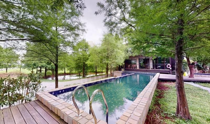 建築與生態池協調的互補美感