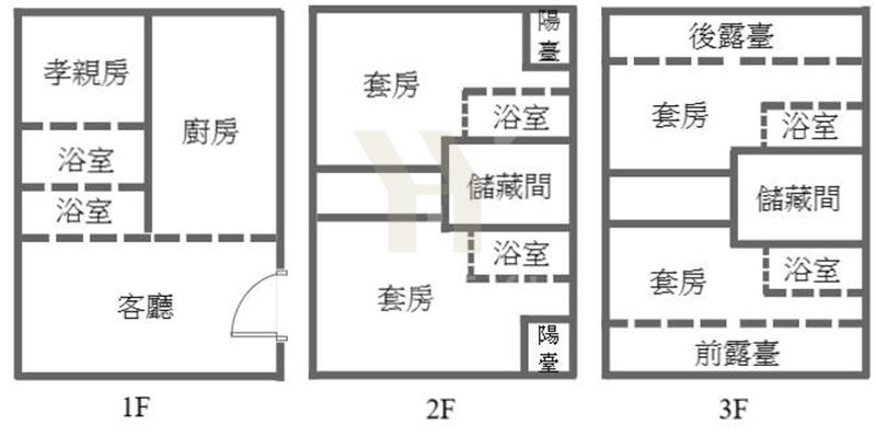 間間套房,並有陽台,頂樓有前後大露臺。 格局方正,備有超大置物間。 預留電梯空間