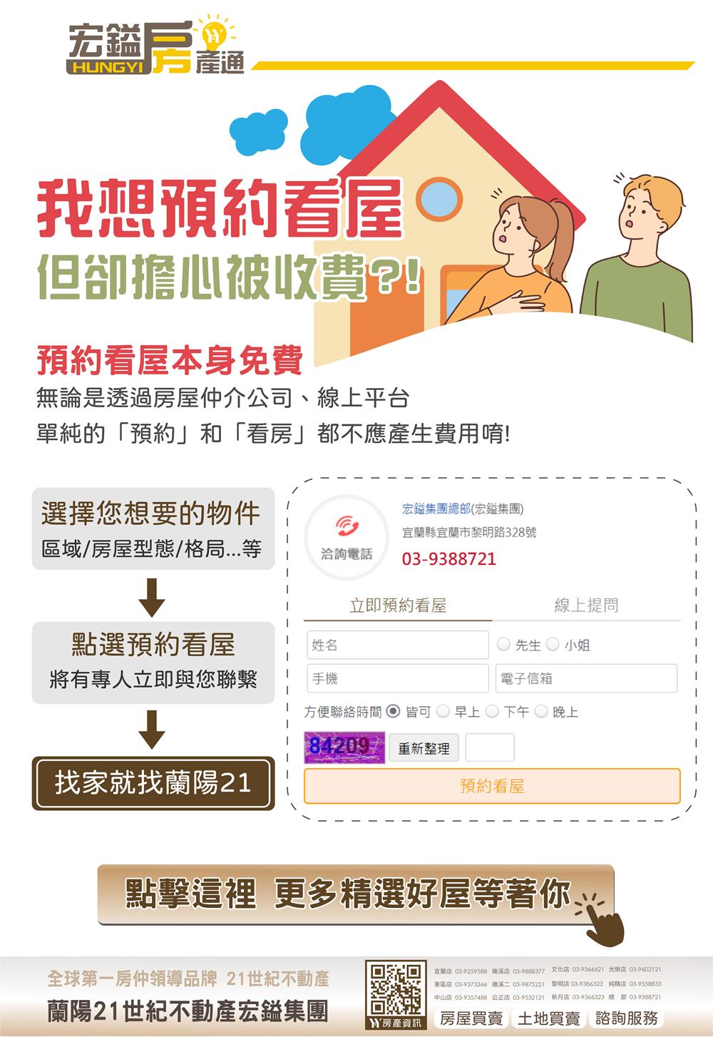 宏鎰集團蘭陽 21 世紀不動產提供免費帶看服務,