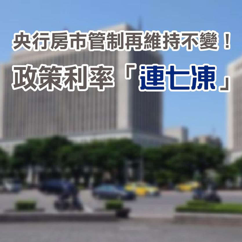 台灣央行今(18)日下午召開今(114)年第四季理監事會議,最終決議政策利率不變、為「連七凍」,重貼現率、擔保放款融通利率及短期融通利率,分別維持年息2%、2.375%及4.25%。至於大眾很關注的信用管制與房市部分,央行依舊維持政策不變,另外,全體銀行不動產貸款占總放款比率(不動產貸款集中度)從去年6月底高點37.61%,緩降至今年11月底的36.70%,央行表示,會密切關注房地產相關政策對房市的可能影響,適時調整相關措施內容,此外,近一年來,央行請銀行自主管理不動產貸款總量目標,銀行多已落實執行,且不動產貸款相關指標都有改善,